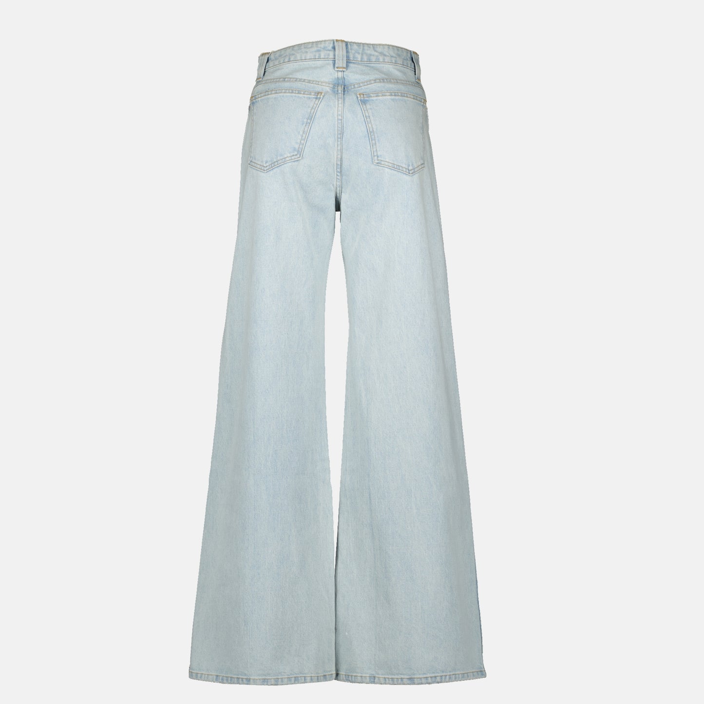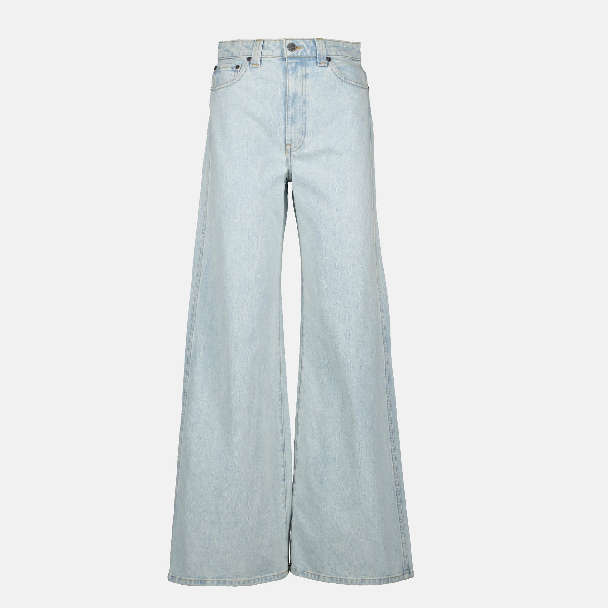 Jeans Dane en denim de Khaite pour femme de la collection Printemps-Été 2025. Ils présentent une coupe droite, une taille haute et un design à cinq poches.