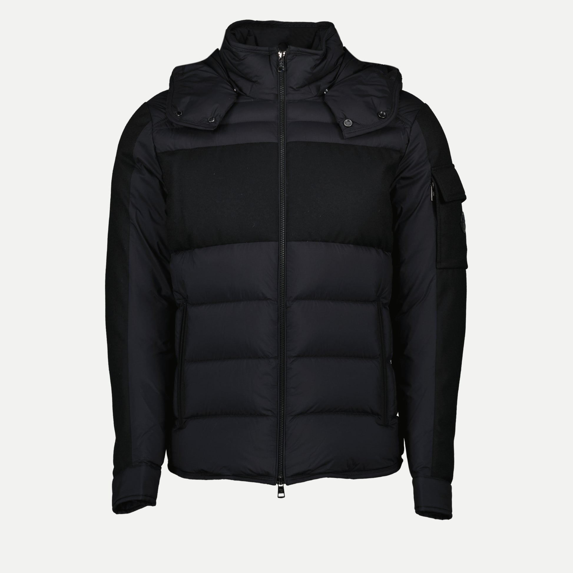 Doudoune Barbustel noir de la marque Moncler pour homme, fait partie de la collection Automne-Hiver 2024. Elle est conçue en laine et polyamide avec une coupe droite et des détails fonctionnels.