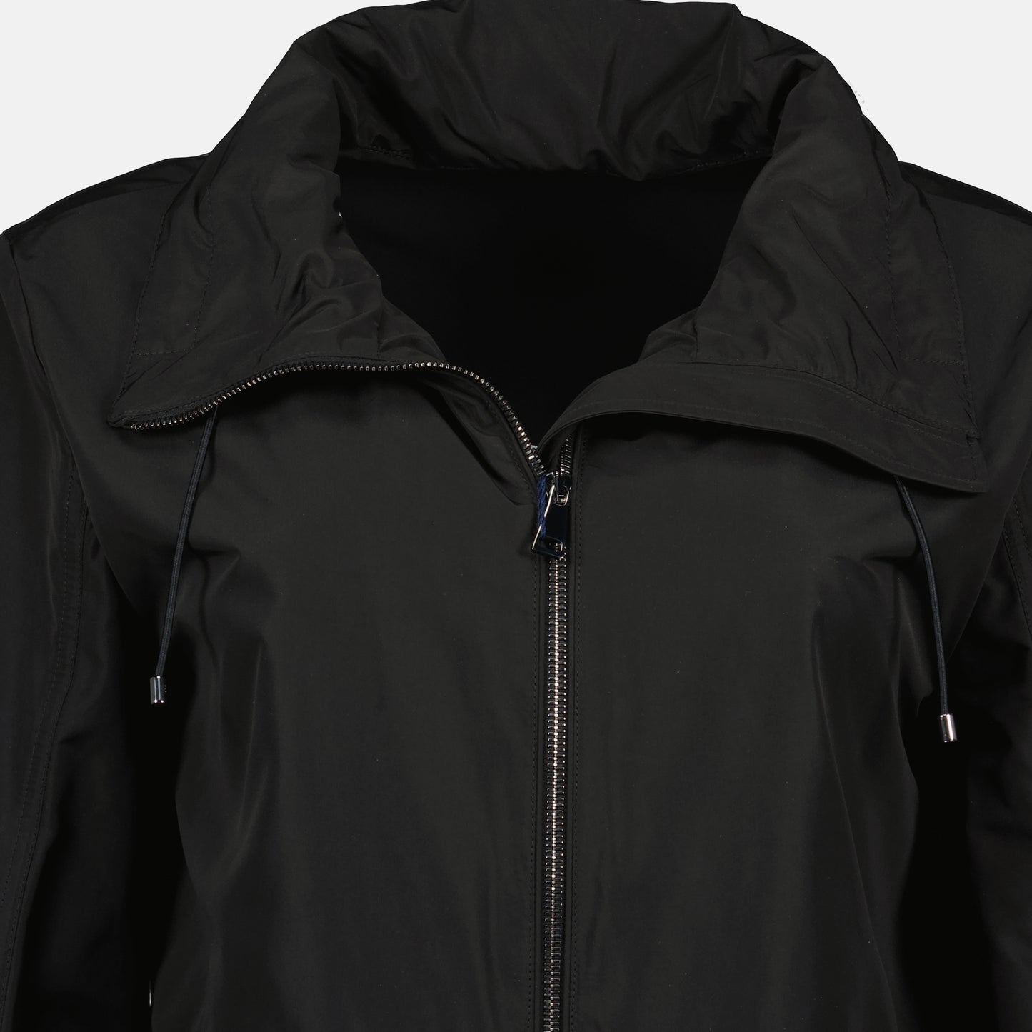 La parka Enet noire de Moncler est un vêtement pour femme de la collection Printemps-Été 2025. Elle présente un design technique avec une capuche amovible et des poches latérales zippées.