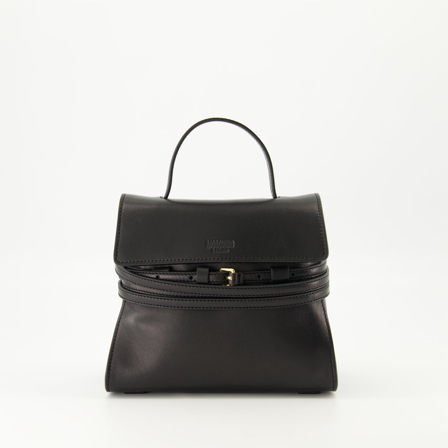 Le Sac Tie Me small noir de Moschino est un accessoire élégant pour femme. Il fait partie de la collection Printemps-Été 2025 et est réalisé en cuir de mouton nappa.