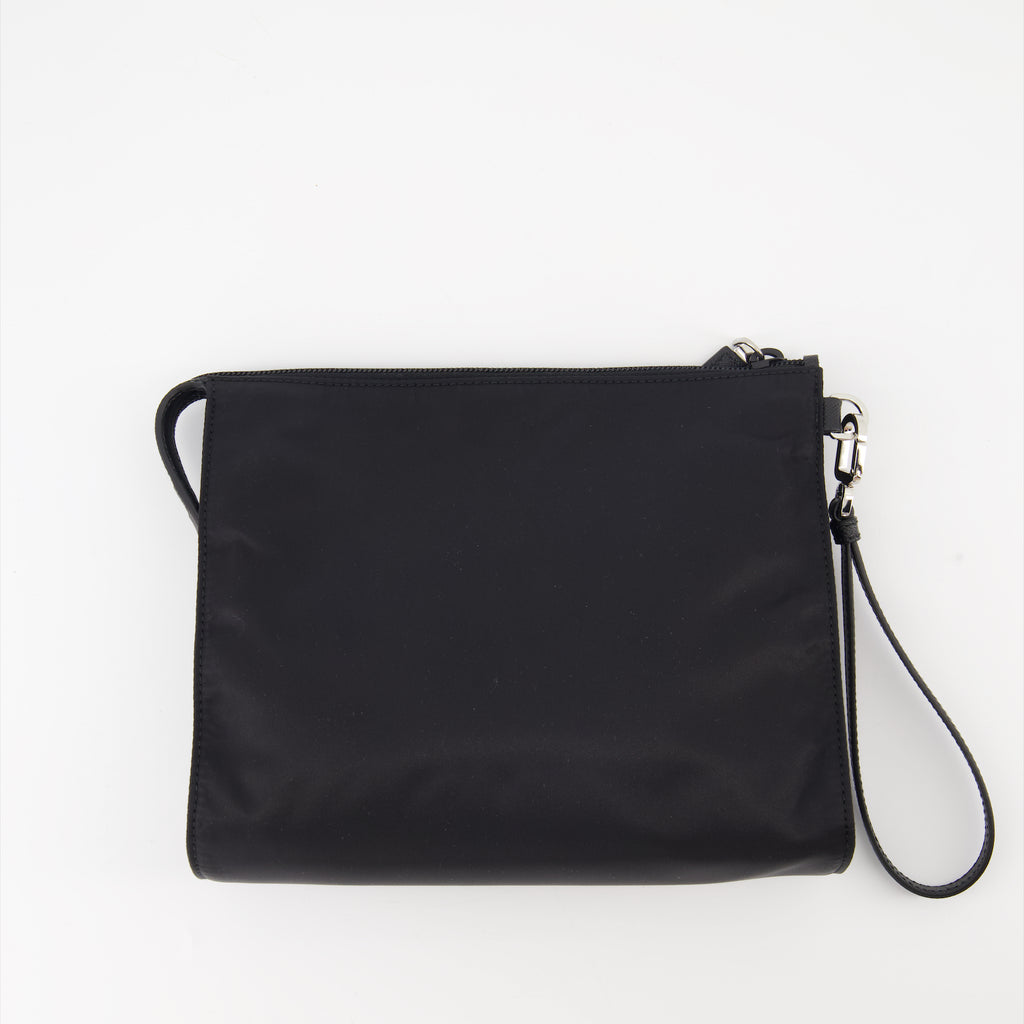 La pochette en Re-Nylon noir de Prada est un accessoire élégant et pratique pour les hommes modernes. Réalisée en polyamide recyclé et cuir de veau, elle allie durabilité et style. Dotée d'une fermeture zippée, d'un logo triangle en métal émaillé et d'une poche intérieure zippée, elle offre un espace de rangement sécurisé pour vos essentiels. Sa doublure à imprimé logo Re-Nylon ajoute une touche de sophistication supplémentaire. La dragonne amovible en cuir permet un porté confortable et polyvalent. Cette pochette est parfaite pour compléter un look urbain et chic, tout en contribuant à la protection de l'environnement grâce à son matériau recyclé.