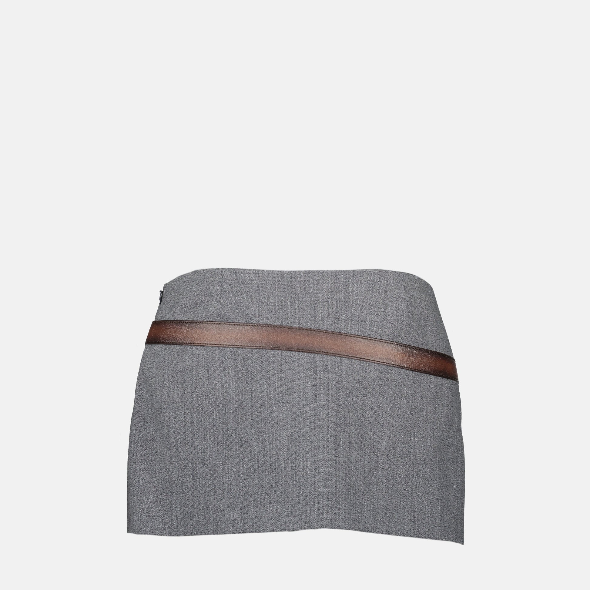 Mini jupe avec ceinture en laine de Prada pour femme. Cette pièce fait partie de la collection Printemps-Été 2025 et se distingue par sa coupe mini et son imprimé 3D.