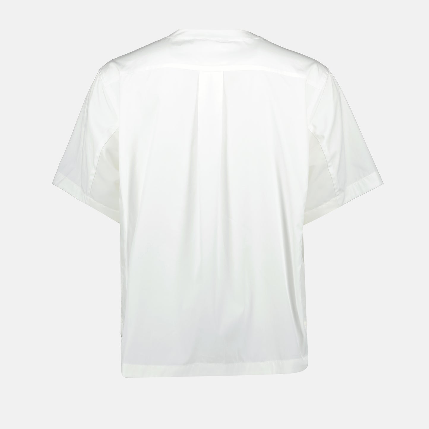 T-shirt en jersey blanc de la marque Sacai pour homme. Il fait partie de la collection Printemps-Été 2025 et présente un col rond, des manches courtes et des détails en nylon.