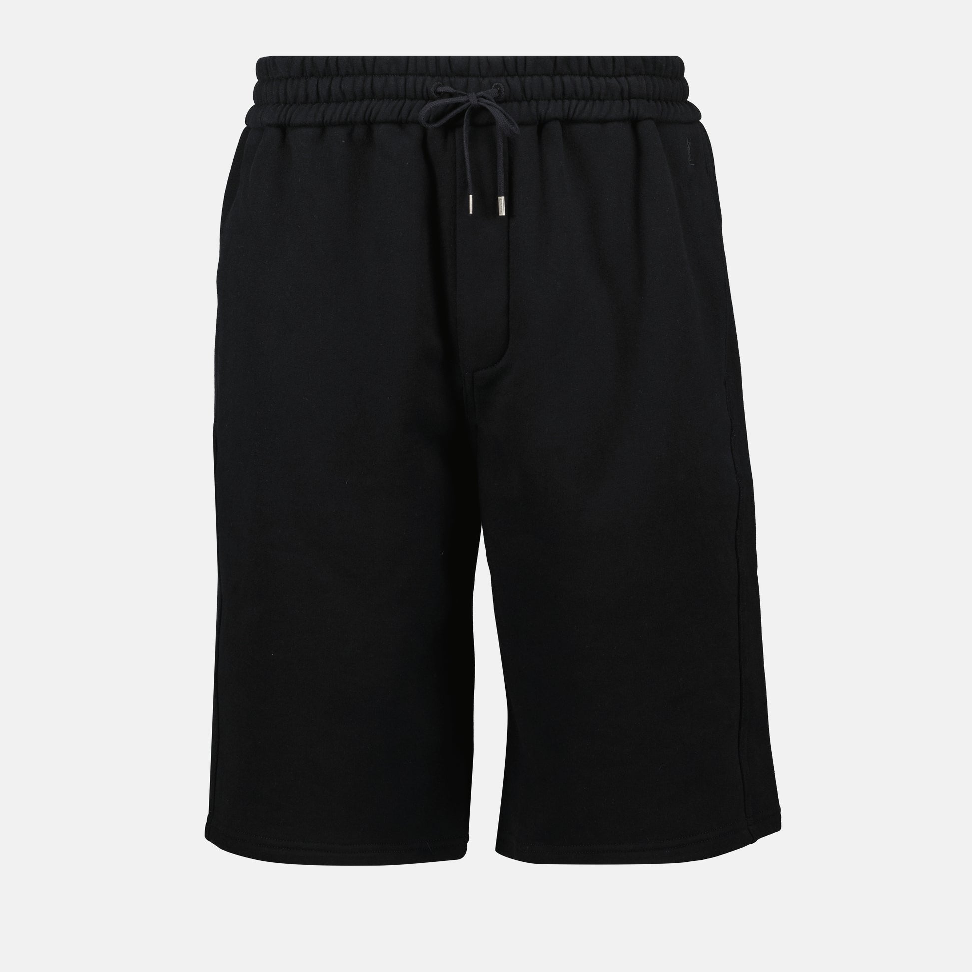 Bermuda Cassandre noir de Saint Laurent est un vêtement pour homme de la collection Printemps-Été 2025. Il est fabriqué en coton avec une coupe droite et des détails pratiques.