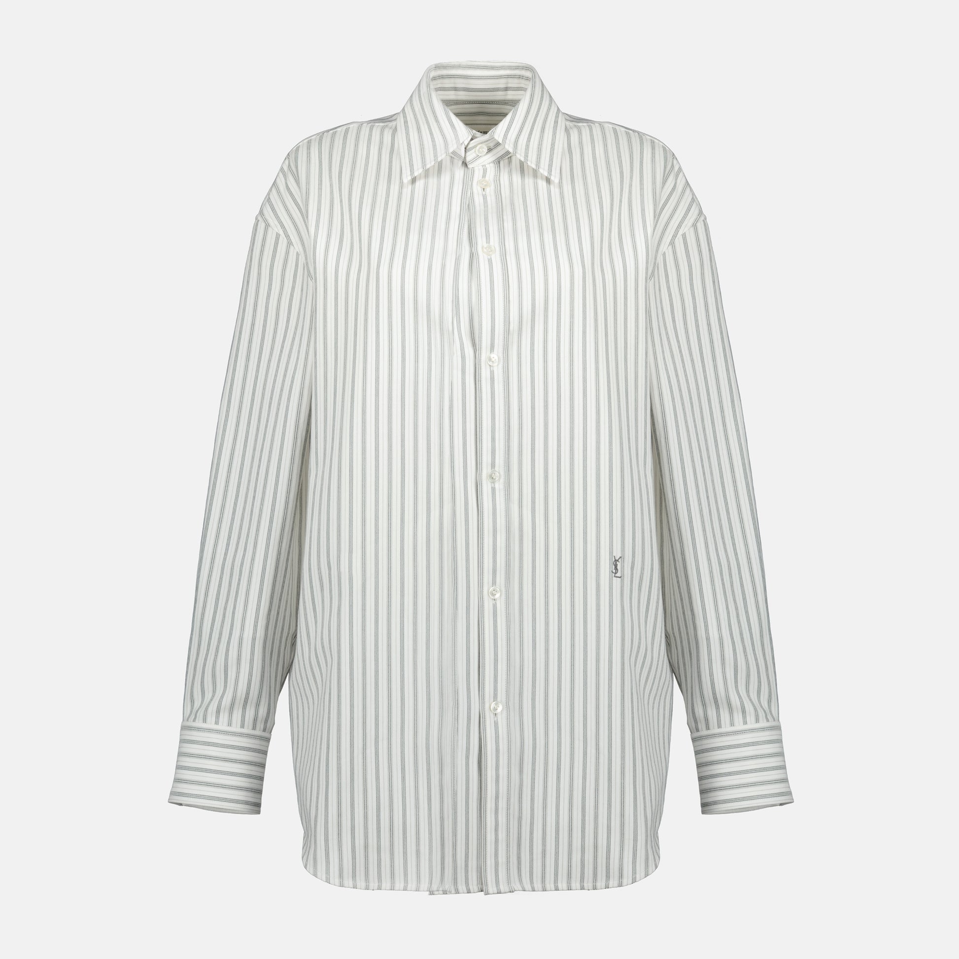 Chemise à rayures noir et blanche de Saint Laurent pour femme. Cette pièce fait partie de la collection Printemps-Été 2025 et est réalisée en coton avec des détails soignés.