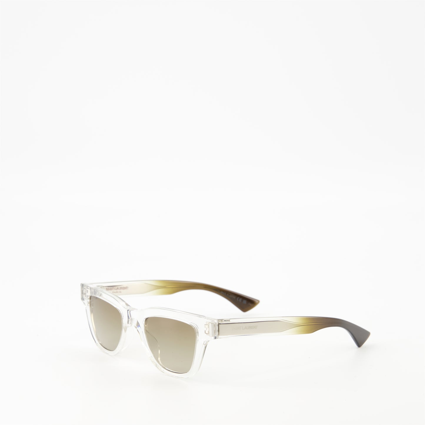 Les lunettes de soleil SL 789 crystal de Saint Laurent sont unisexe et font partie de la collection Printemps-Été 2025. Elles sont réalisées en acétate avec une protection UVB/UVA de 100 %.