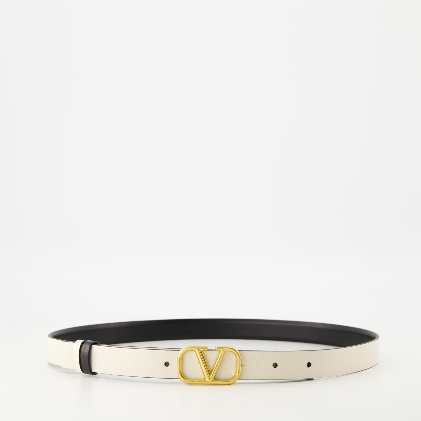 Ceinture réversible VLogo noir-blanc de Valentino Garavani pour femme. Cette pièce de la collection Printemps-Été 2025 est réalisée en cuir de veau lisse avec un design ajustable et élégant.